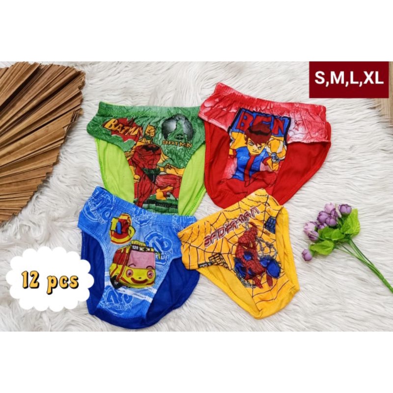 Fashion Bayi & Anak > Pakaian Anak Laki-Laki > Pakaian Dalam > 12 Pcs Celana Dalam Anak Gambar Sablon / Celana Dalam Anak Murah / Celana Dalam anak Cowok / Celana Dalam Grosir Lusinan