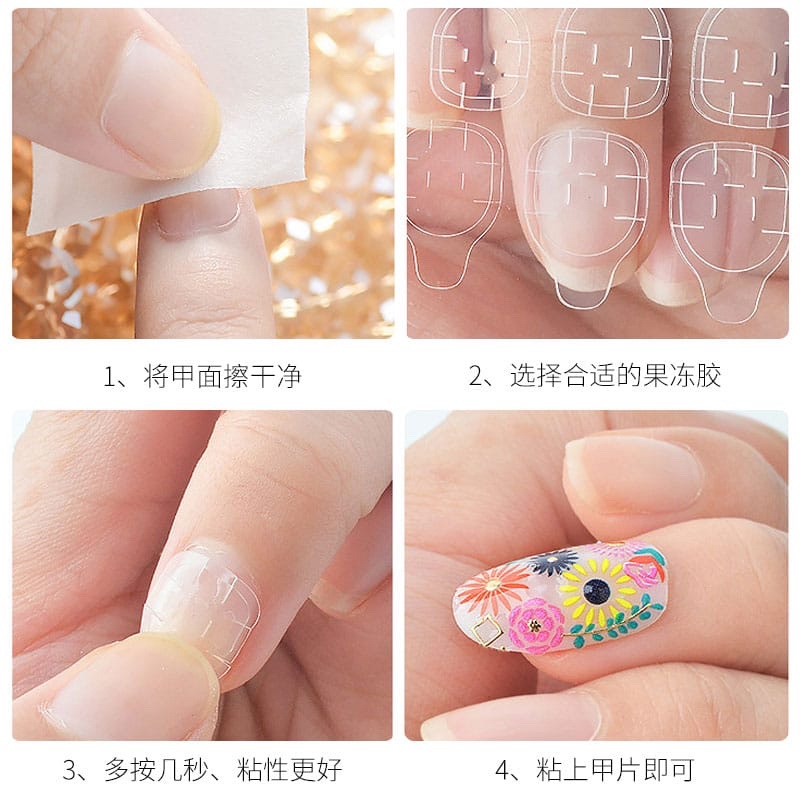 pemakaian tahan 3/4 hari. semakin jarang kena air semakin tahan lama di pakai. Cara pakai kuku palsu 1. Siap kan kuku kamu. Cuci tangan, hapus cat kuku, lem kuku, atau zat lain yang masih nempel pada kuku. 2.Jika kuku asli kamu panjang, potong dan kikir pada bagian pojoknya. 3.pilihlah kuku palsu dengan ukuran yang sesuai. Jika salah akan terlihat sangat buruk. 4.Setelah memilih, Langsung tempelkan kuku palsu ke kuku 5. Diamkan selama 30 detik. Setelah itu potong ujung kuku palsu, ke ukuran yang kamu inginkan dengan gunting biasa atau gunting kuku 6. jika mau di lepas, tinggal lepas saja tidak akan ada menempel sisa lem nya. untuk lebih mudahnya dengan air"qt