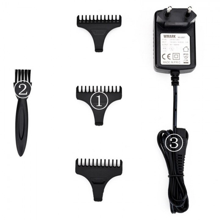 Isi dalam kemasan: 1x WMARK NG-2027 3x Limit Comb (1/2/3mm) 1x Power Adaptor 1x Cleaning Brush 1x Lubricant Oil 1x User Manual