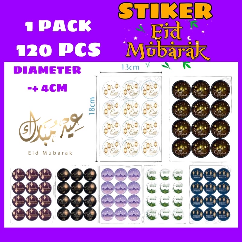 120 PCS stiker eid mubarak 3,8 CM / stiker ramadan kareem / sticker untuk hamper lebaran ukuran BESAR