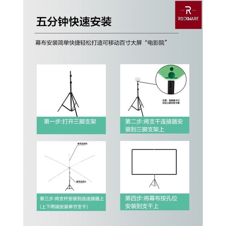 Detail 127 ROCKWARE Layar Proyektor 100 inci Soft Fabric - Lengkap dengan Stand