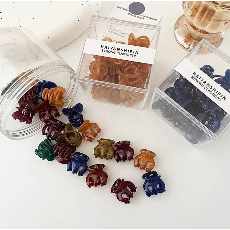 Detail [12pcs] Jepit Rambut Mini SET Doff Matte Jepit Kutu Warna 2.5cm Jedai Poni Ukuran Mini Free Pot Tabung Wadah Aksesoris