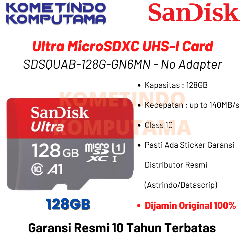 Detail 140MB/s R 128GB SDSQUAB SANDISK ULTRA MICRO SD, 140MB/s R, 100% ORIGINAL RESMI - SDSQUAB-128G-GN6MN