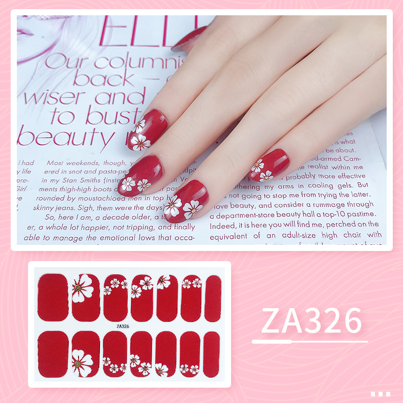 Spesifikasi: Nama produk: stiker kuku (ZA set) Spesifikasi produk: 14 stiker/lembar (10 dapat ditempelkan dengan kedua tangan, dan ekstra 4 stiker disediakan) Pengepakan: kemasan independenFitur produk:1. Tidak ada lem yang diperlukan. Tidak ada lem yang mudah dioperasikan, Tidak ada lem yang diperlukan. 2.Tidak perlu pergi ke toko. Jangan membayar mahal3. terjangkau aman dan ramah lingkungan4. tersedia untuk wanita hamil.5.Air Normal bisa mencuci rambutmu dan mencuci rambutmu.