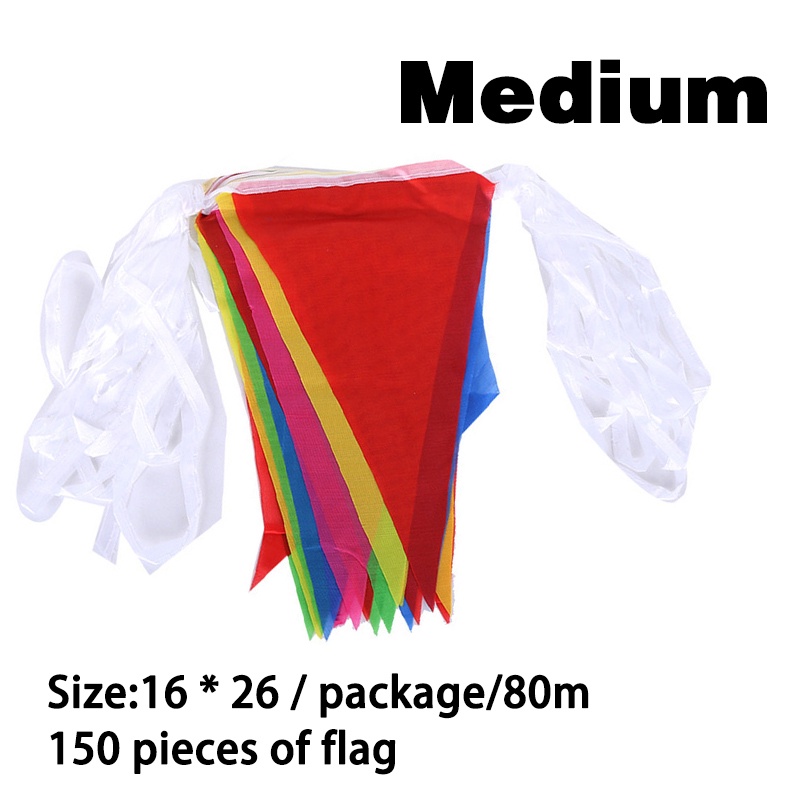 Item Bahan: kain Warna: warna-warni Ukuran: 16*24 cm (1 Pcs) Paket termasuk: 80m 150Pcs Bendera Hias Festival