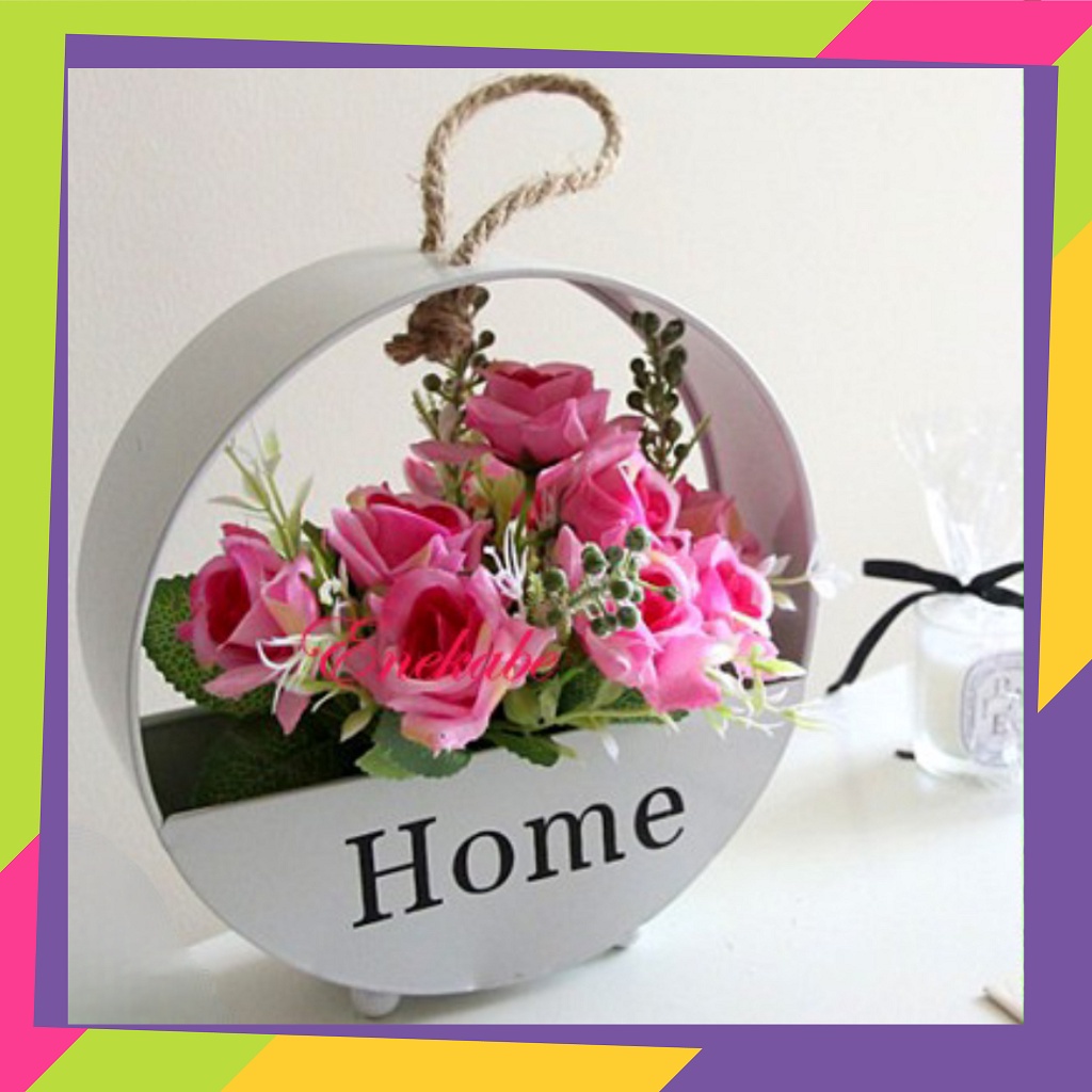 Dekripsi produk : - Ukuran diameter pot bunga : 20 cm - Ukuran tebal bingkai pot bunga : 6,5 cm - Ukuran panjang tali dadung : 23 cm - Ukuran tinggi pot untuk tanam bunga : 7,5 cm - Pot bunga dengan logo Home - Terdiri dari 4 varian warna : pink fanta, putih, biru, cream