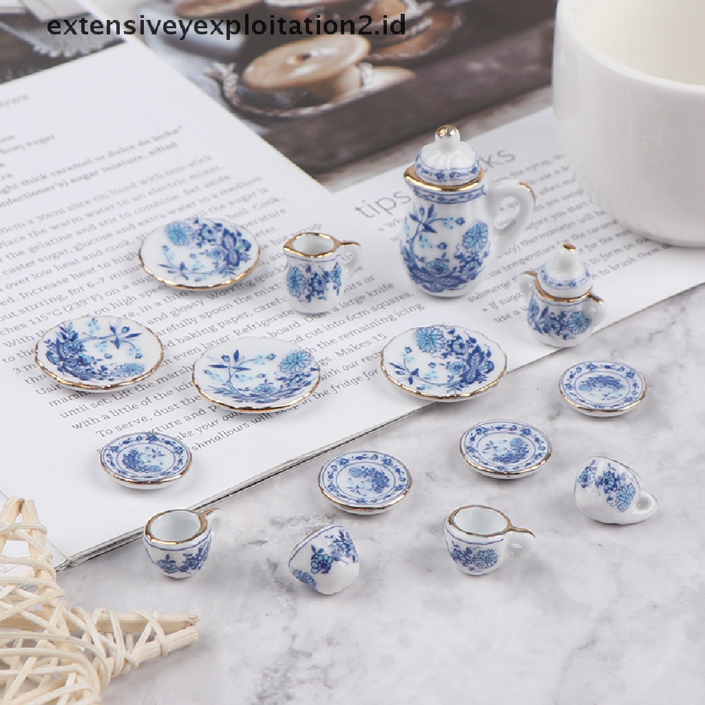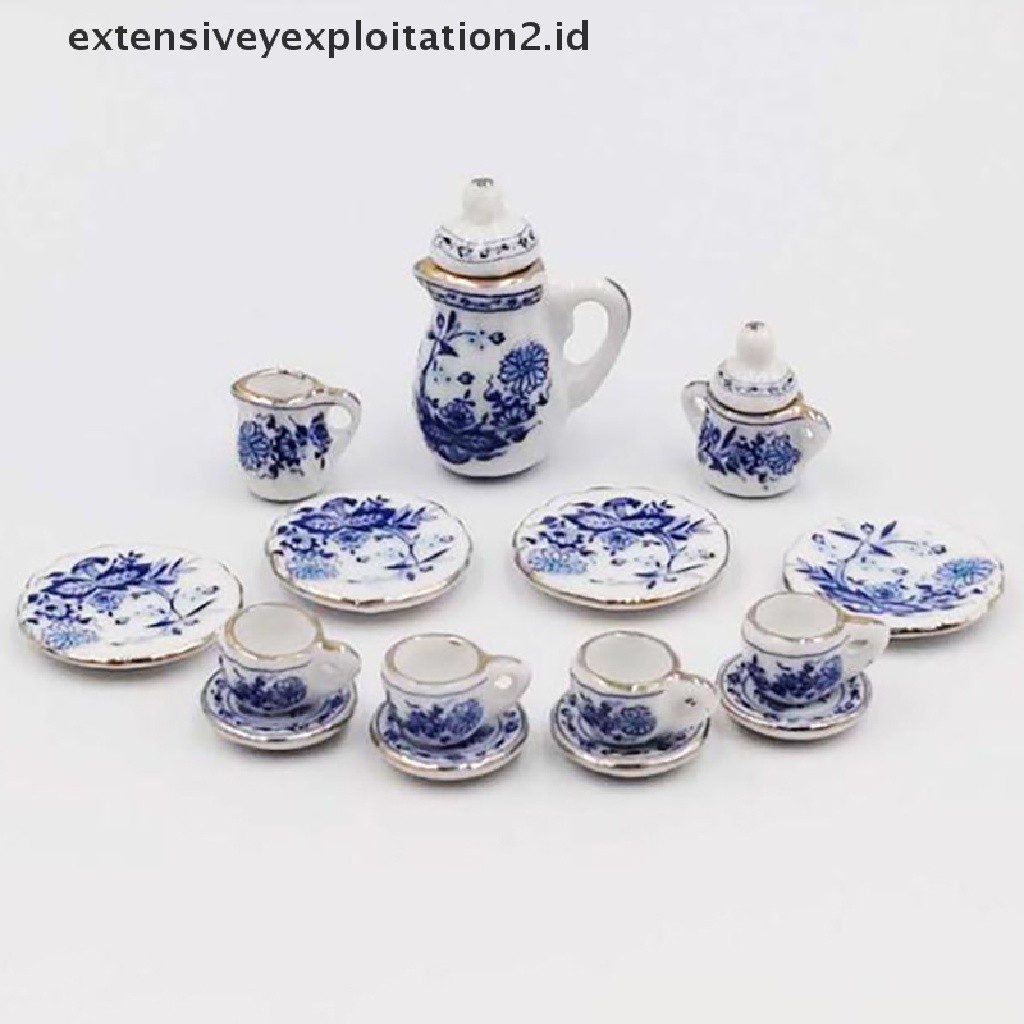 Detail 15pcs / Set Mainan Miniatur Cangkir Teh Porselen Keramik Untuk Aksesoris Rumah Boneka 1: 12