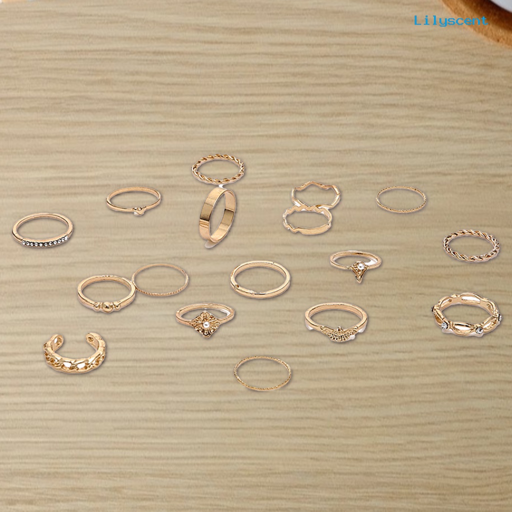 Detail 17pcs Cincin Knuckle Hias Mutiara Berlian Imitasi Gaya Vintage Untuk Wanita