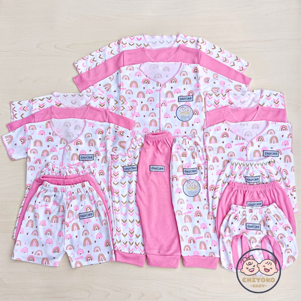 18 Pcs / 9 Stel Baju Bayi Celana Bayi Setelan Baju Bayi Baru Lahir SERIAN PINK Chiyoko Baby