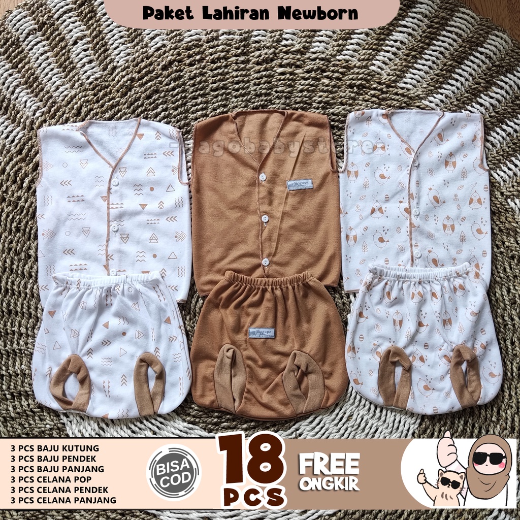 Detail 18 Pcs Paket Lahiran Best Seller warna Coklat Susu Unisex baby Newborn