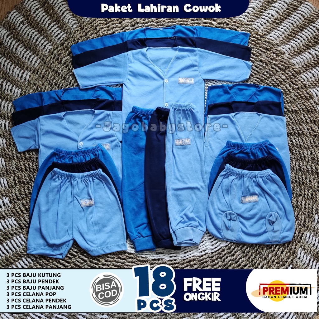 Fashion Bayi & Anak > Pakaian Bayi > Atasan > 18 Pcs Paket Lahiran HPL Newborn Persiapan Lahiran Cowok Biru Polos Elegant Premium