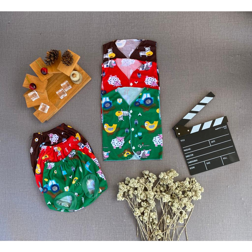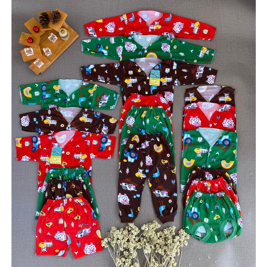 Ukuran Spesifik : PANJANG Lebar Dada: 24 cm Panjang Baju: 31 cm Panjang Lengan: 19 cm Panjang Celana: 37 cm Pinggang Karet: 15-30 cm lebar pinggung 24 cm