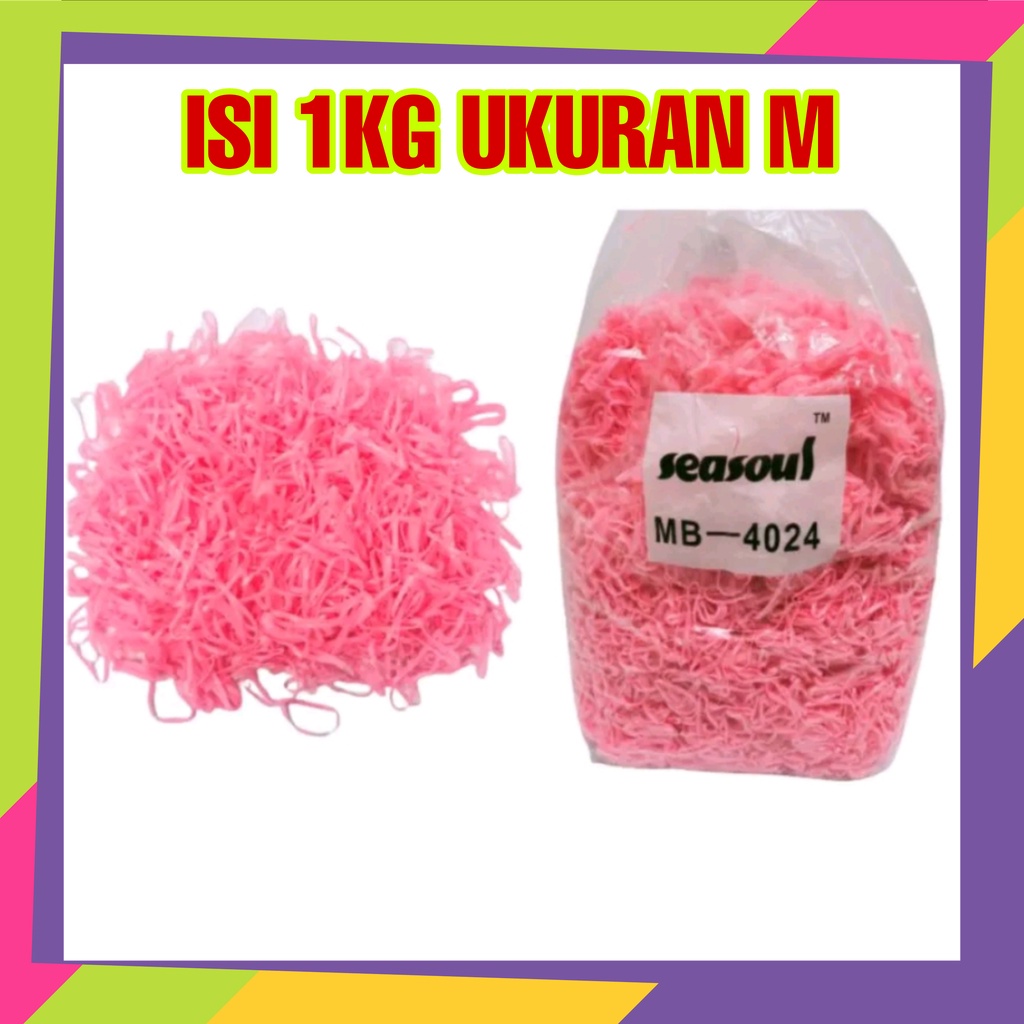 Detail 1881 [Grosir] isi 1kg karet Jepang ikat rambut ukuran M warna polos bening & doff