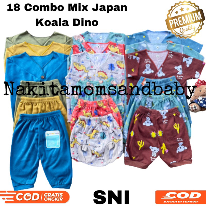 Detail 18pc Paket perlengkapan Baju Bayi Baru lahir Combo Mix Japan Koala dino newborn/Lahir SNI Promo 8.8