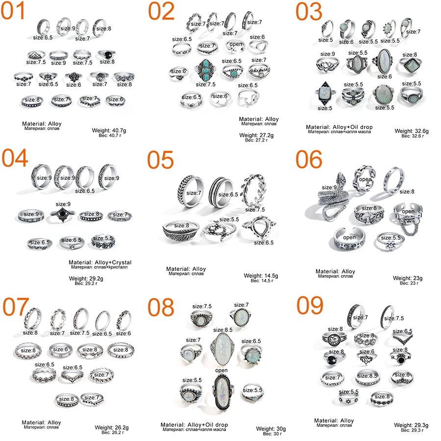 Jenis Logam: Paduan Seng Gaya: Punk Nomor Model: Set Cincin Tipe Barang: Cincin Fitur: Kualitas Tinggi 2022 Desain Baru: Set Cincin Jari Midi Vintage Jumlah: tampilan gambar
