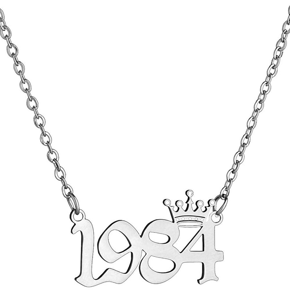 1990-2021 Kalung Digital Rantai Klavikula Stainless Steel Tahun Mahkota Angka Liontin Kalung Wanita Hadiah Ulang Tahun
