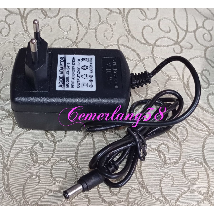 Spesifikasi: Input : AC 220 Volt Frekuensi : 50/60 Hz Kapasitas Max : 1 Ampere Output : DC 24 Volt Panjang kabel : 90cm Dimensi : 8.0 x 5.4 x 6.5cm ( P x L x T ) Overjack DC : 5.5mm x 2.5mm (ukuran standard atau umum) Indikator : Led 1 warna