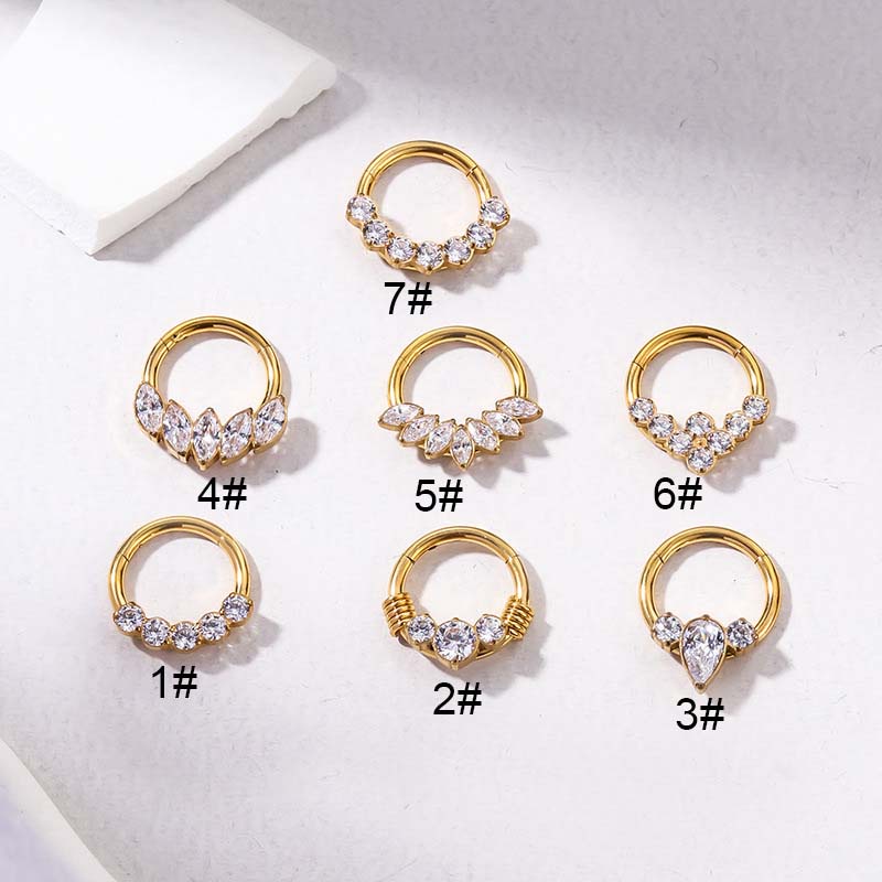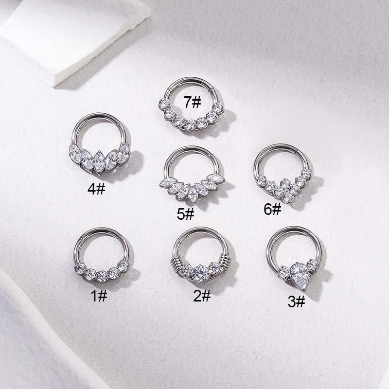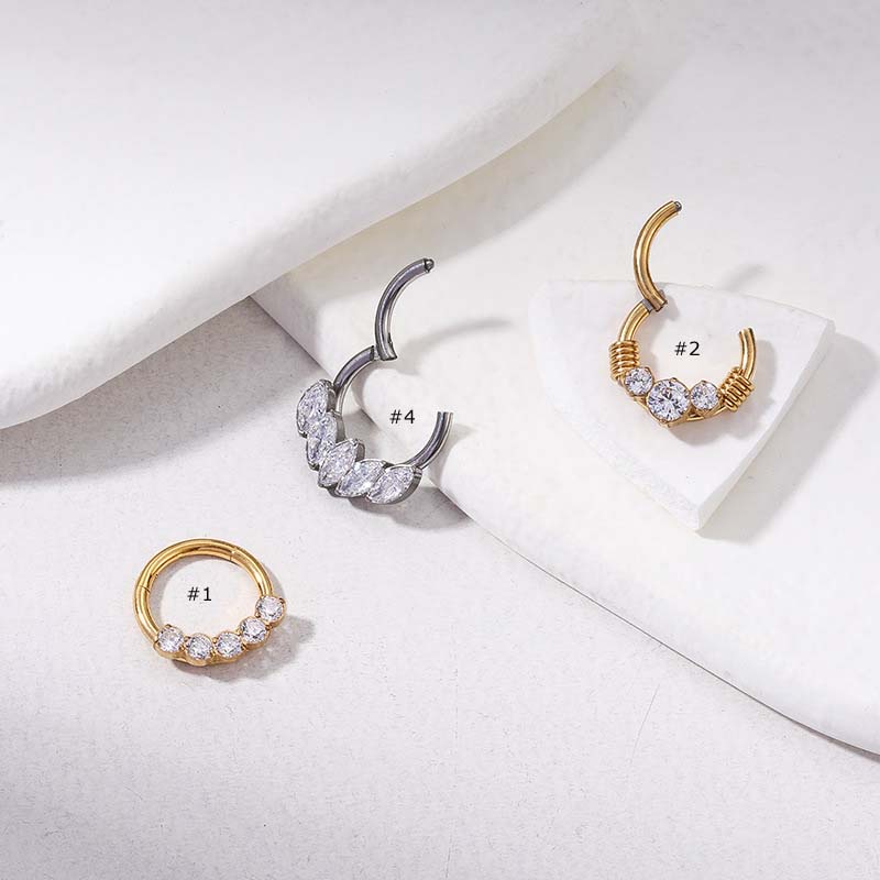Detail 1biji G23 Baja Titanium Hoop Nose Ring Telinga Helix Fresh Piercing 16Gauge Hypoallergenic Dengan Zircon
