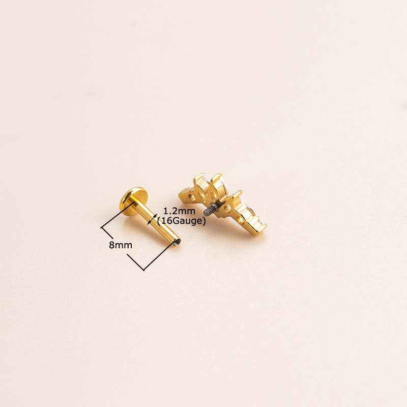 Detail 1biji G23 Baja Titanium Ulir Internal Kepala Datar Bibir Stud Helix Lobe Pinna Tragus Anting Tindik 16Gauge Perak Emas