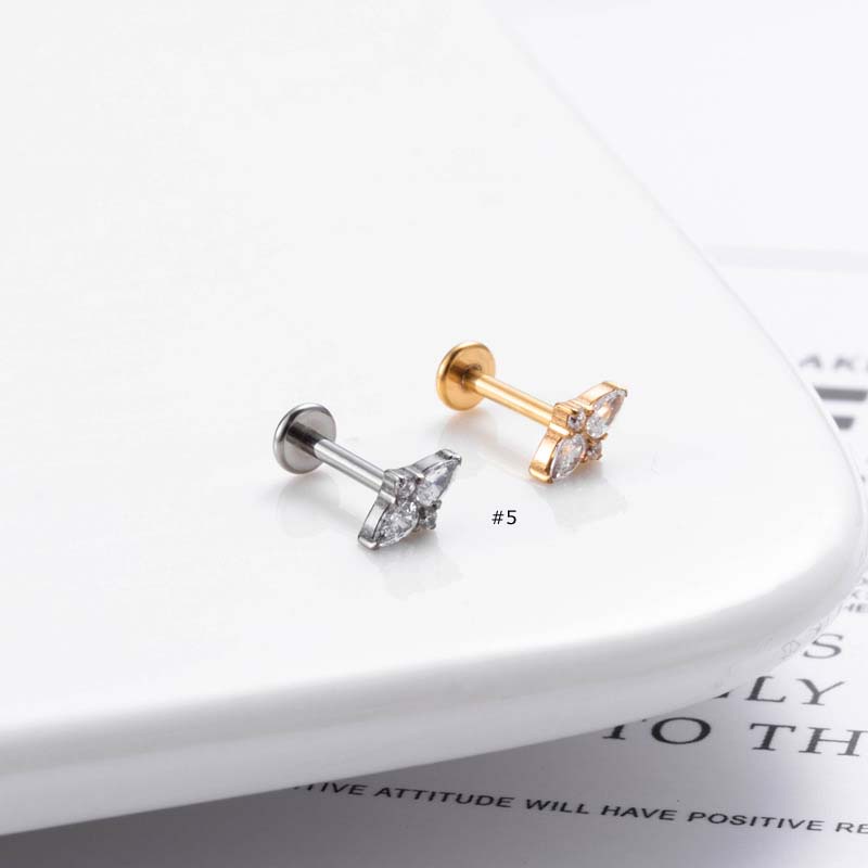 1biji G23 Titanium Gigi Dalam Bibir Kuku F136 Titanium Bertatahkan Zirkon Fashion Mahkota Kupu-Kupu Karangan Bunga Tulang Rawan Helix Piercing