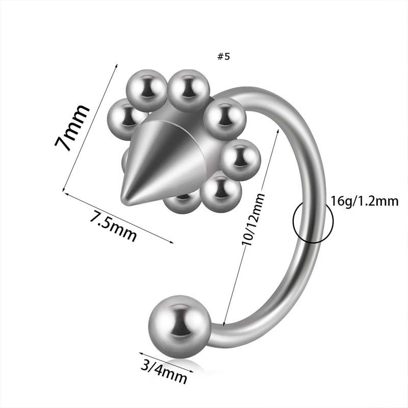 Detail 1biji Gaya Punk Spike Tapal Kuda Stailness Steel Lip Ring Cincin Hidung 16Gauge Telinga Lobe Piercing 16Gauge Unisex