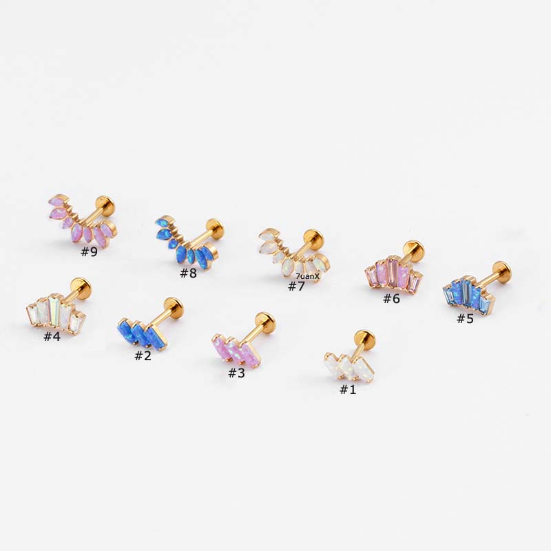 1biji Stud Labret Bibir Benang Internal G23 Bahan Titanium Steel Dengan Opal Helix Tragus 16Gauge Piercing Earring