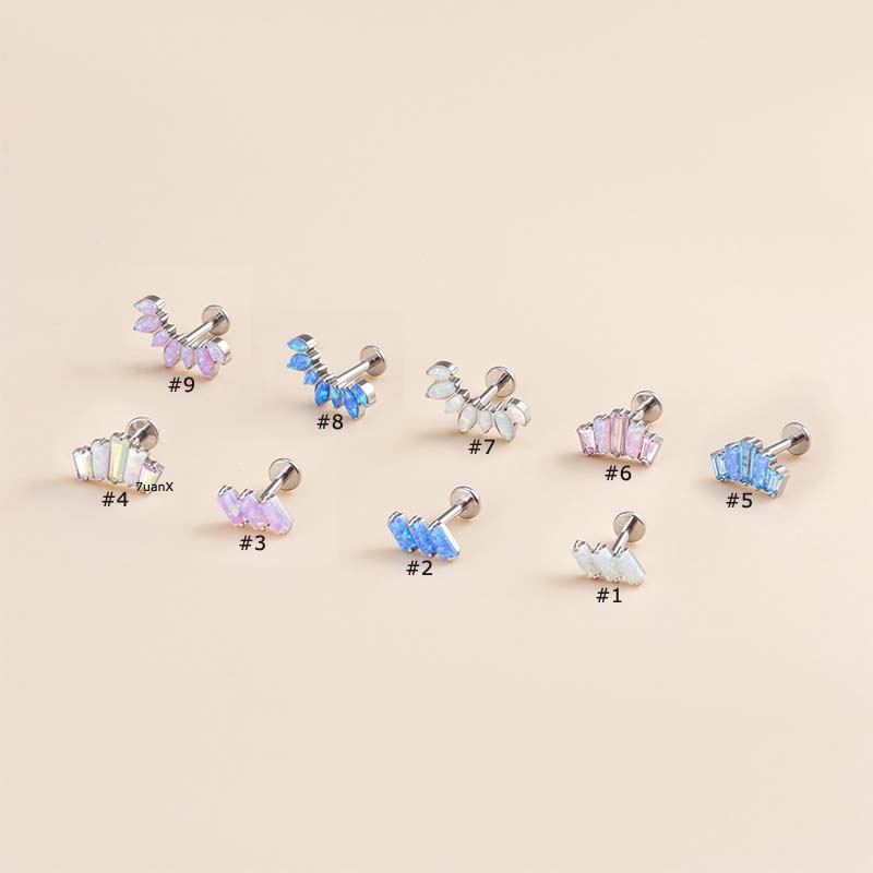 Aksesoris Fashion > Aksesoris Fashion Lainnya > 1biji Stud Labret Bibir Benang Internal G23 Bahan Titanium Steel Dengan Opal Helix Tragus 16Gauge Piercing Earring