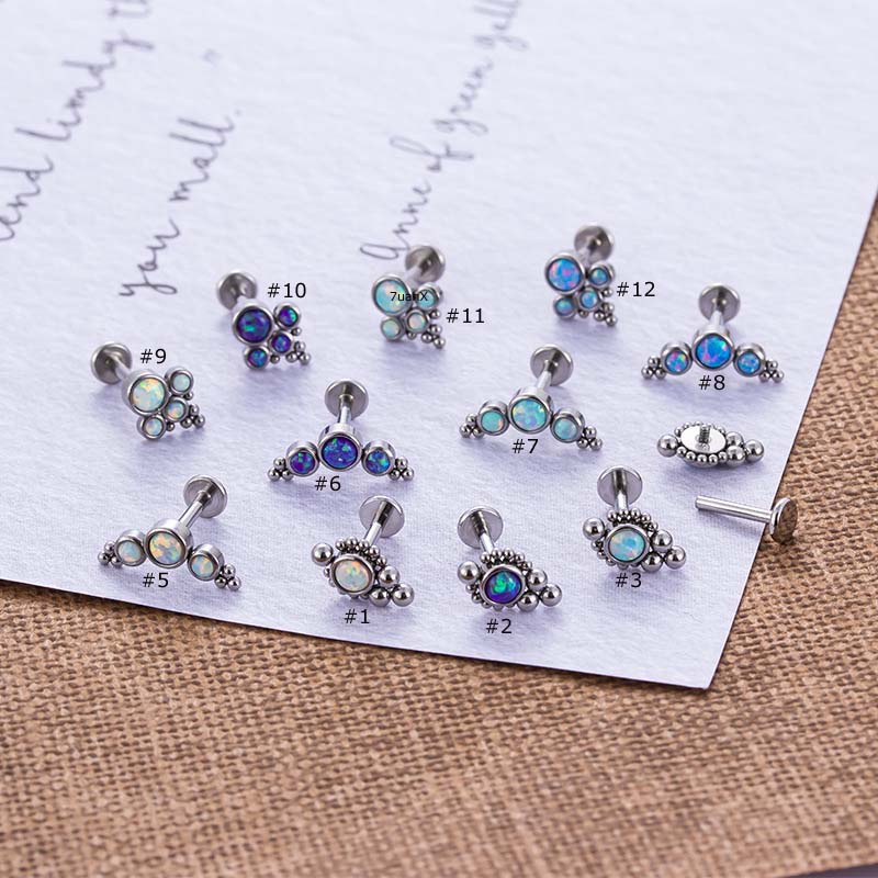 Detail 1biji Ulir Internal Labret Bibir Stud Kepala Rata Helix Lobek Anting 16Gauge Tindik Perhiasan Tubuh