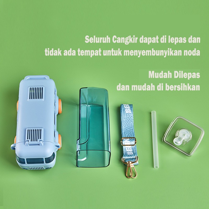 Detail [1KG 2PCS] Babyland Botol Air Minum Bentuk Bus Dengan Sedotan Tritan Botol Mainan Anak