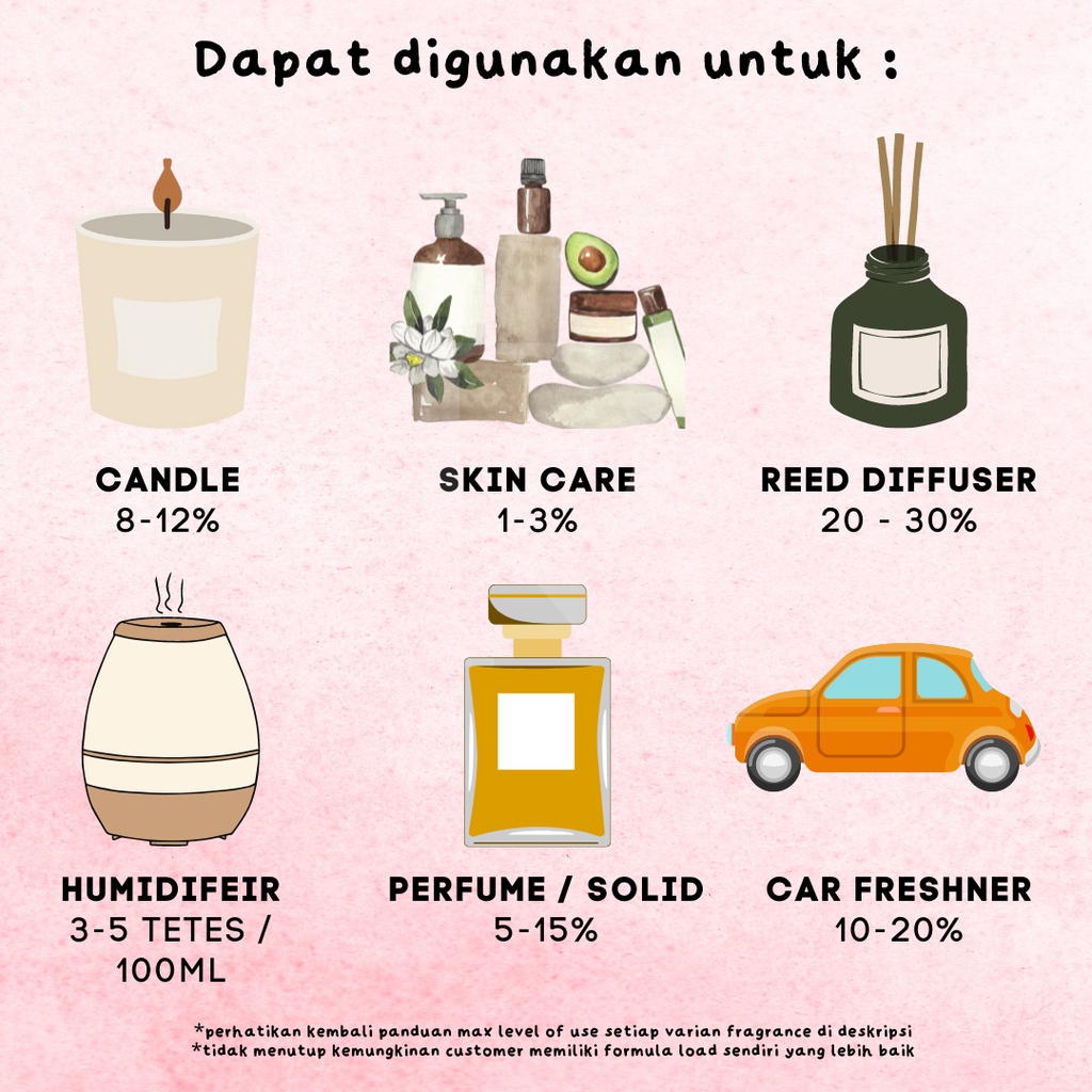 !! PANDUAN PENGGUNAAN !! *Panduan IFRA yang menginformasikan masih batas safety dengan load tertentu *tidak menjadi acuan kadar yang dipakai harus seperti data dibawah *contoh candle umumnya 8% - 12%, soap bar umumnya 1-3% *silakan tentukan formula terbaik untuk produk anda, dianjurkan untuk mengikuti kelas atau membaca artikel untuk melakukan produksi yang baik dan benar