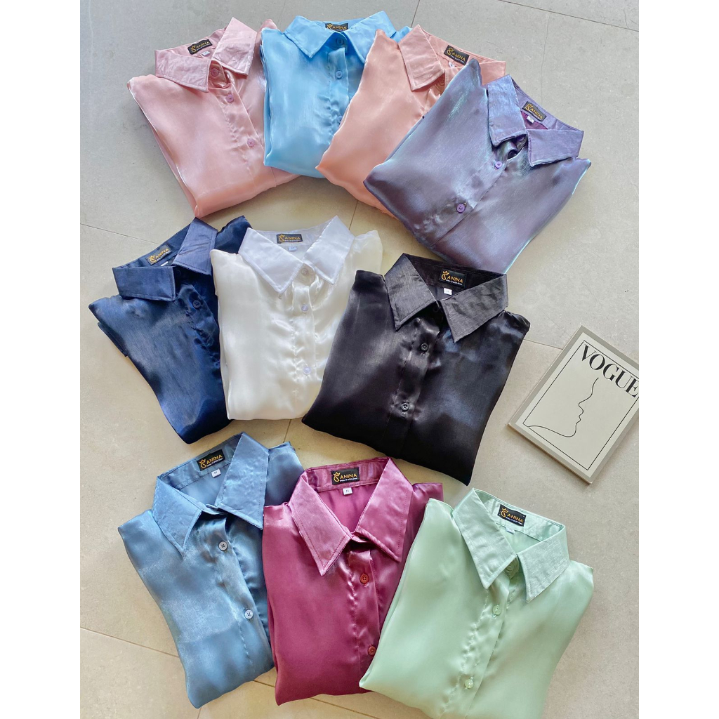 ~ Atasan kemeja dengan style casual & formal ~ Desain full kancing sewarna dan krah kemeja tegak ~ Pergelangan tangan dilengkapi dua kancing ~ Bahan Princess Shimmer Organza handfeel glossy, lembut, tekstur shining dan semi transparan so disarankan menggunakan inner