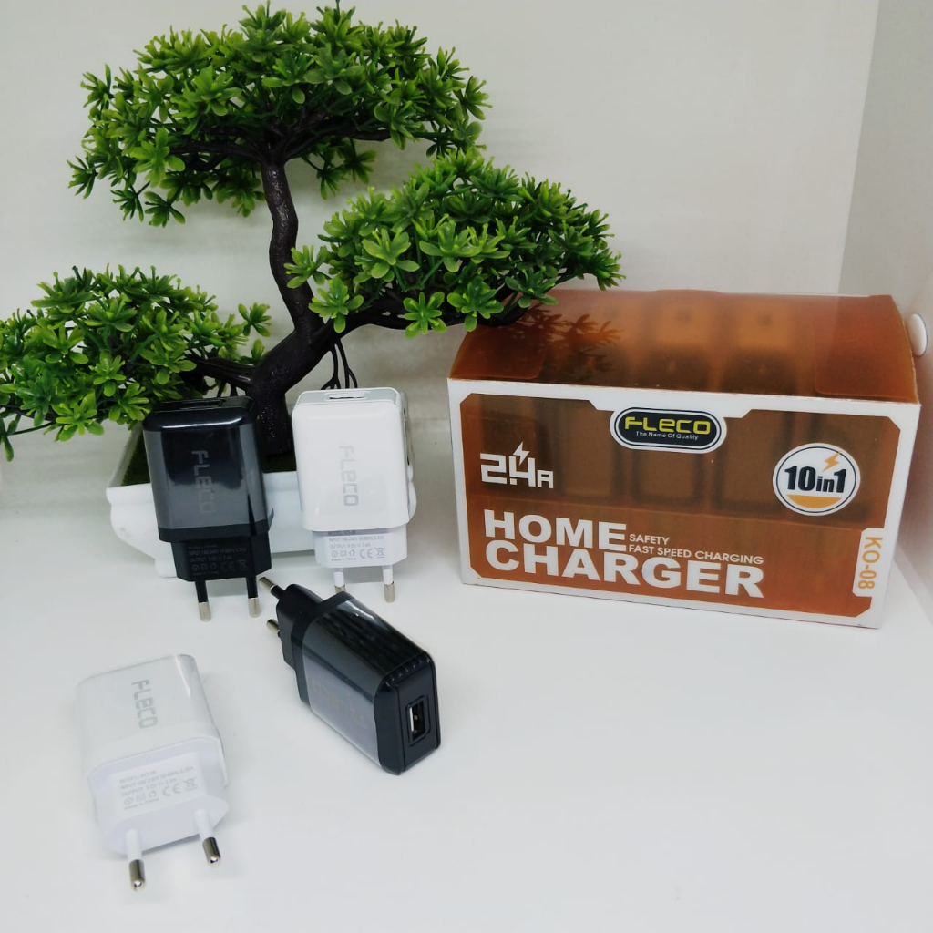 Detail 1kotak 10pcs BATOK CHARGER ADAPTOR FLECO KO-08 1USB 2.1A BATOK CHARGER FLECO KO-08 2.4A 1USB FOR ALL SMARTPHONE