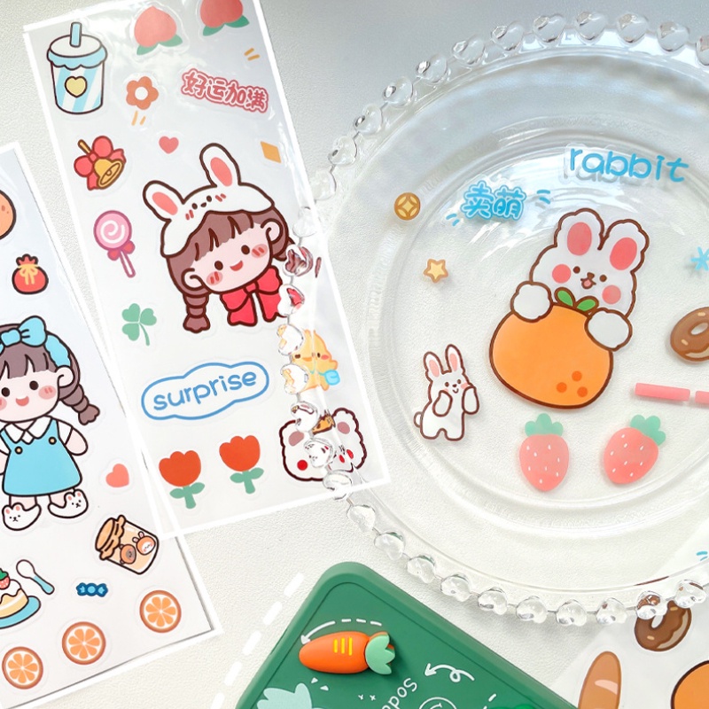 Detail 1lembar Kartun Kelinci PVC Tahan Air Stiker Tangan Akun Gadis Lucu Bunny Stiker Diary Scrapbooking Hias Decals