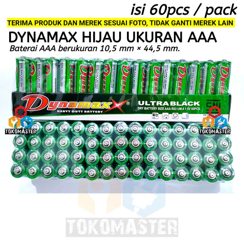 60pcs/Pack Baterai Dynamax size AAA / A3 Cocok untuk segala barang elektronik yang membutuhkan baterai AAA. Terdaftar dan sesuai SNI.