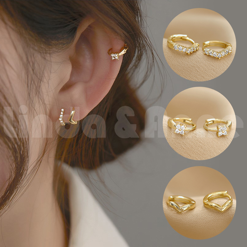 Detail 1Pasang Anting Bulat Hoop Zirkon Mini Berlapis Emas 14K - Anting Huggie Anting Tulang Rawan