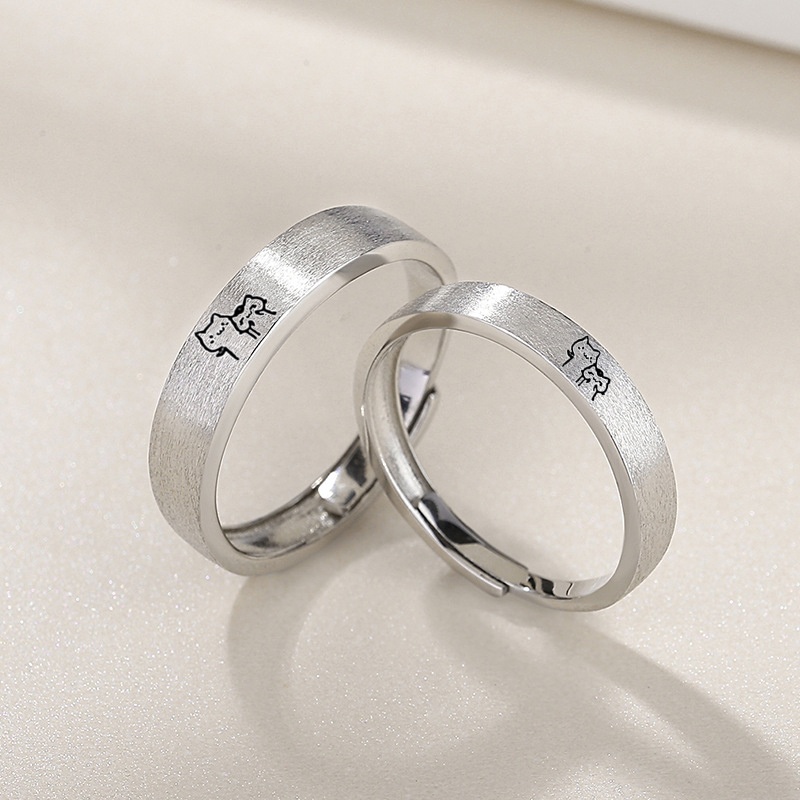 Aksesoris Fashion > Cincin > 1pasang Kitten Couple Cute Sliver Cat Open Ring Untuk Wanita Pria Cincin Jari Yang Dapat Disesuaikan Perhiasan Anniversary Pecinta Romantis
