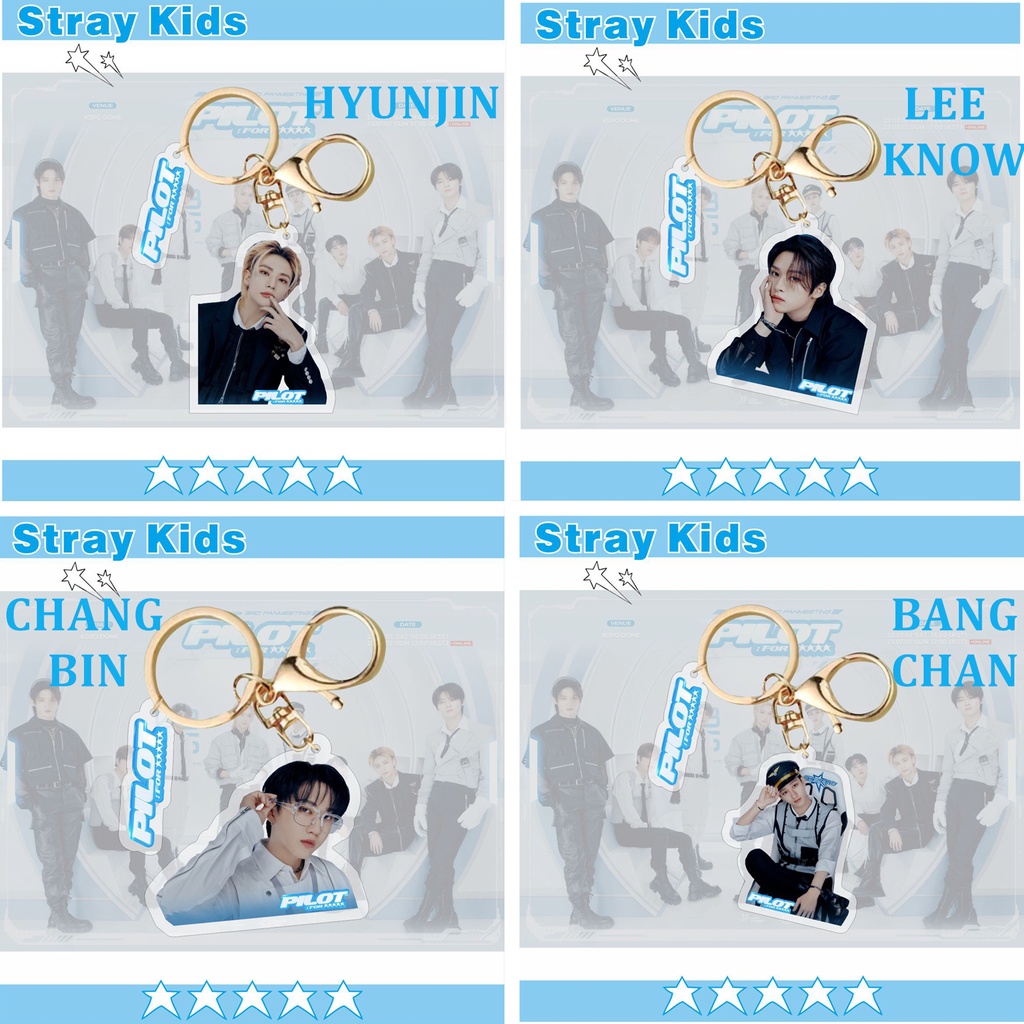 Detail 1pc Album STRAY KIDS 2023gantungan Kunci Akrilik Bintang 5 PILOT Key Ring Gantung