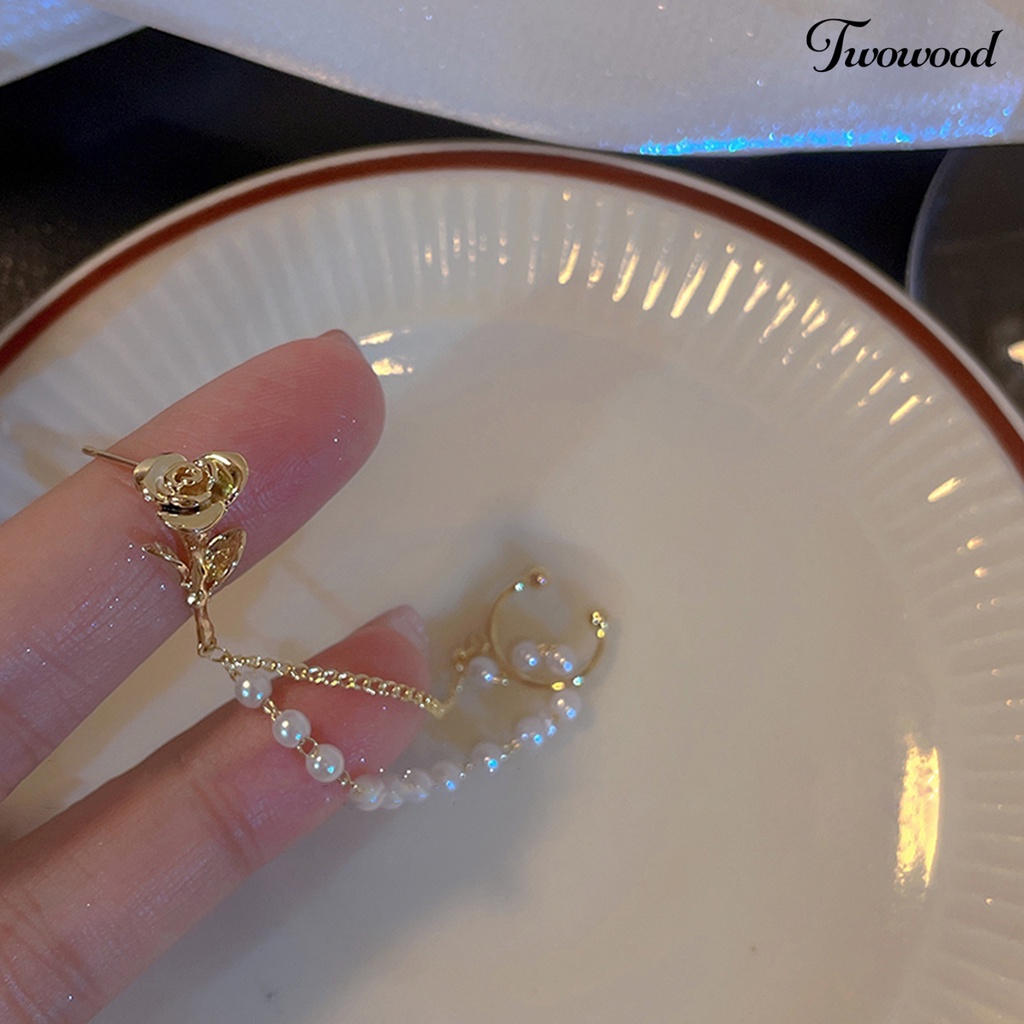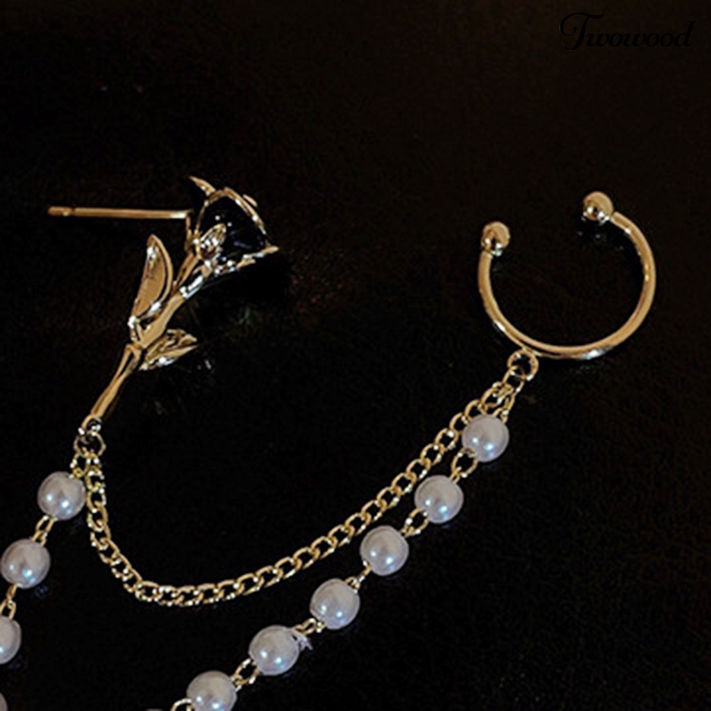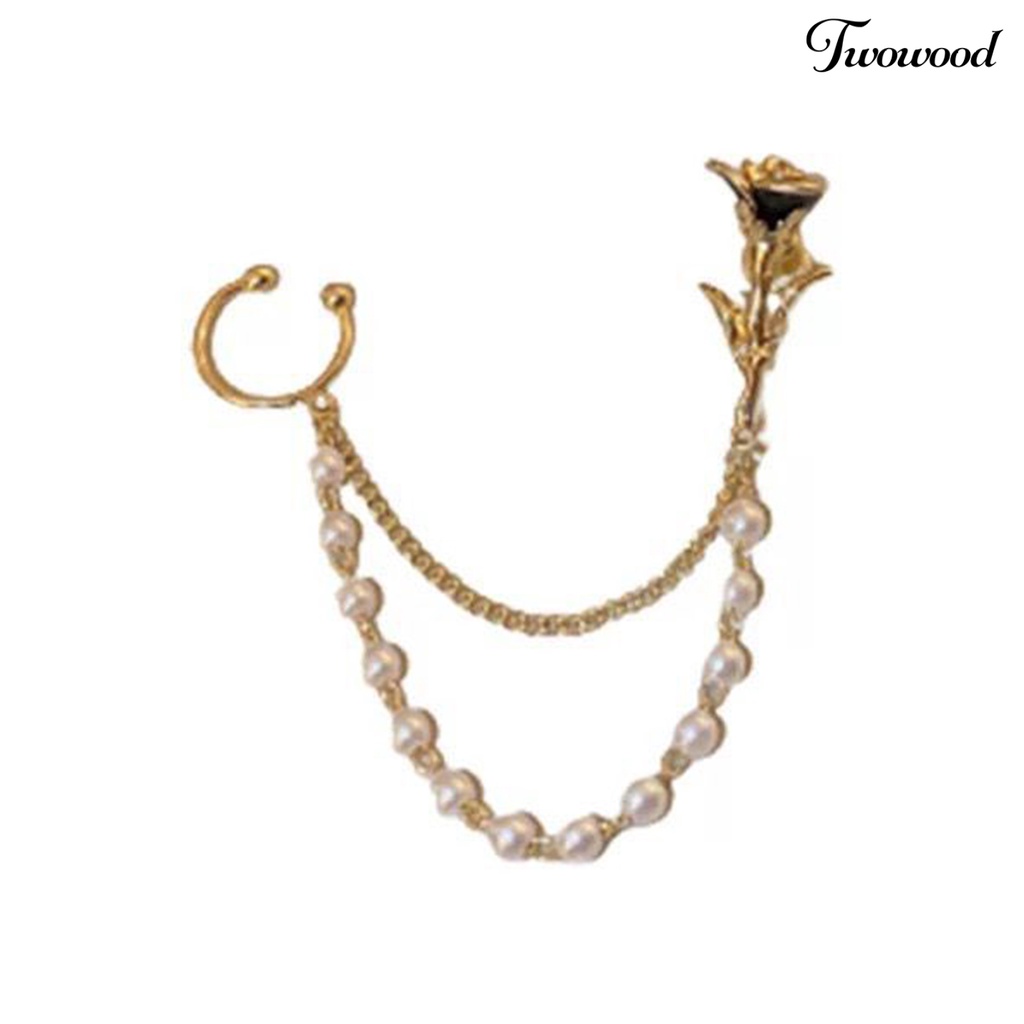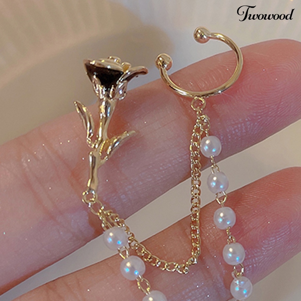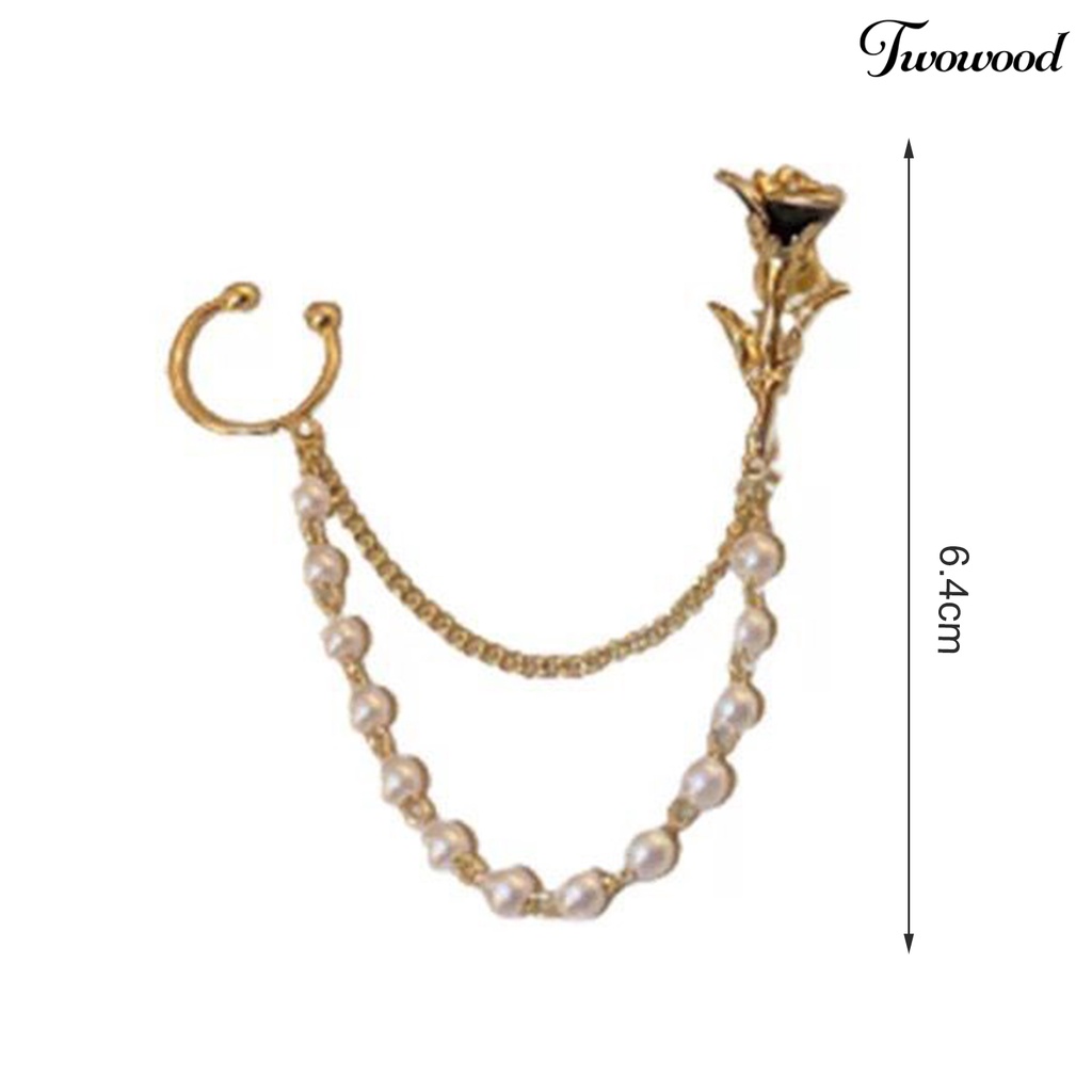 Detail 1pc Anting Klip Bentuk Bunga Mawar Hitam Aksen Mutiara Imitasi Element Untuk Wanita