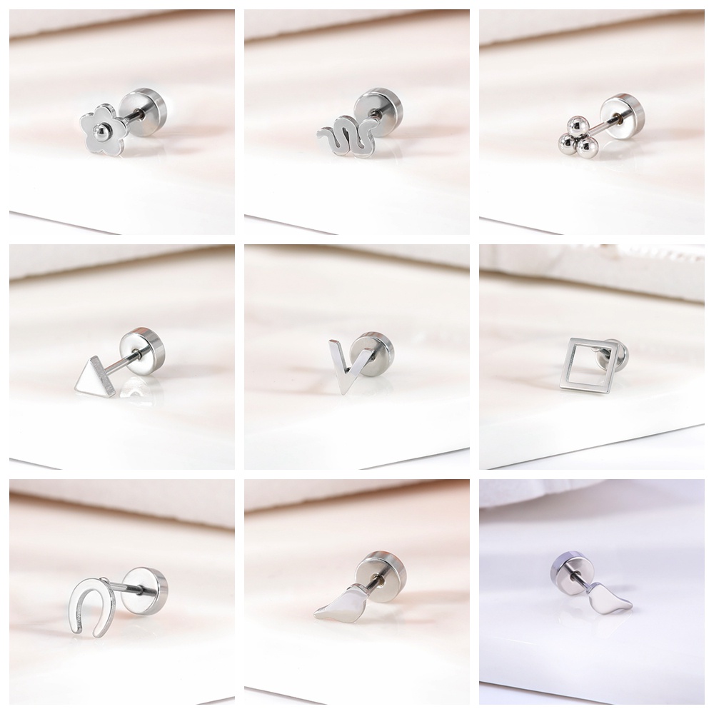 Detail 1pc Anting Stud Desain Bunga Mawar Butterfly Flat Bottom Bahan Stainless Steel