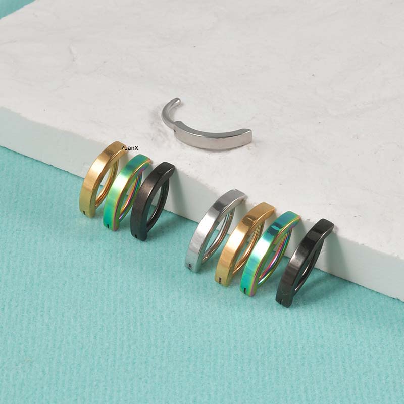 2piece Anting Baja Titanium Pria Hoop 12mm Hitam Perak Tidak Luntur
