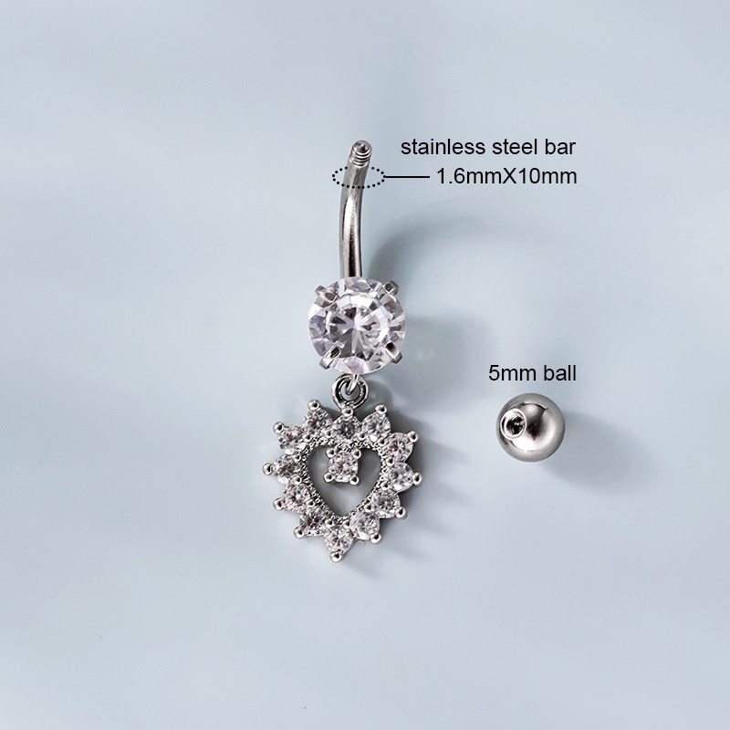 Material: stainless steel with zircon barbell length: 10 mm barbell thickness(Gauge): 1.6 mm(14 Gauge) Steel ball size: 5 mm color: silver 7uanX Quantity: sold by 1 piece(single) they are all available #bodypiercingjewelry #navelpiercing #bellybuttonring #14Gauge #female #stainlesssteel #zircon #butterflydangleshape #heartdangleshape