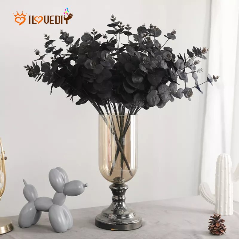 Detail 1pc Buket Bunga Eucalyptus Imitasi 7 Cabang Warna Hitam Untuk Dekorasi Pesta Halloween