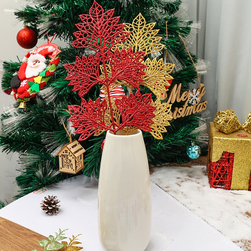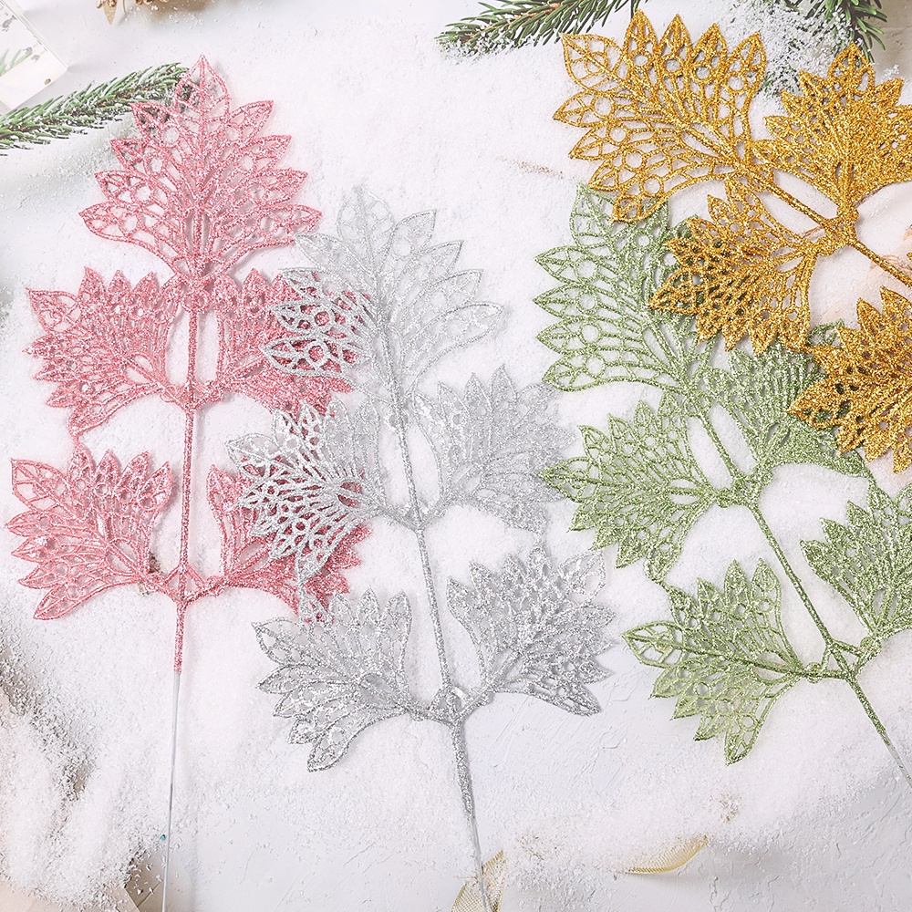 Detail 1pc Daun Peach Sequin Hollow Warna Merah / Gold / Silver / Hijau / Pink Untuk Dekorasi Pohon Natal