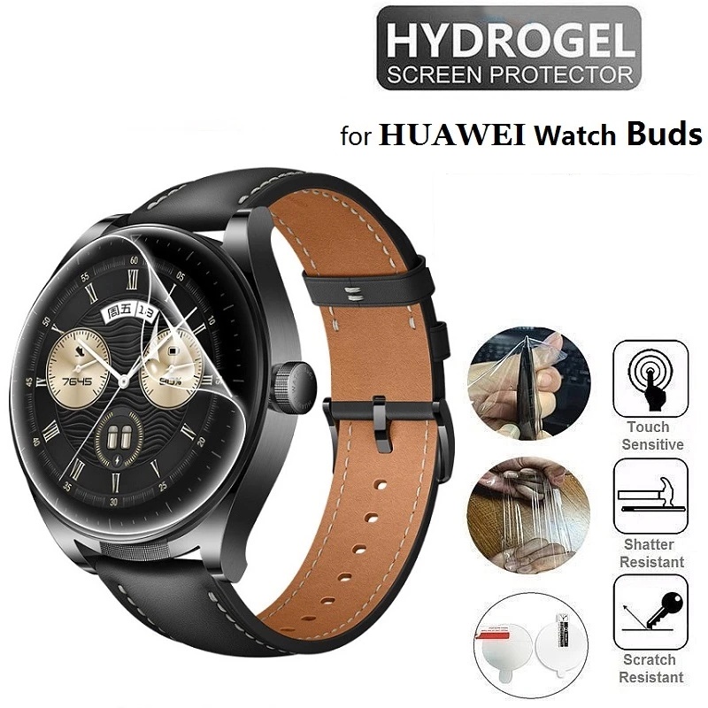 Detail 1pc Film Hidrogel Lembut Melengkung Penuh, Untuk Pelindung Tunas Jam Huawei, SmartWatch HD Film Anti Gores TPU Fleksibel Bening