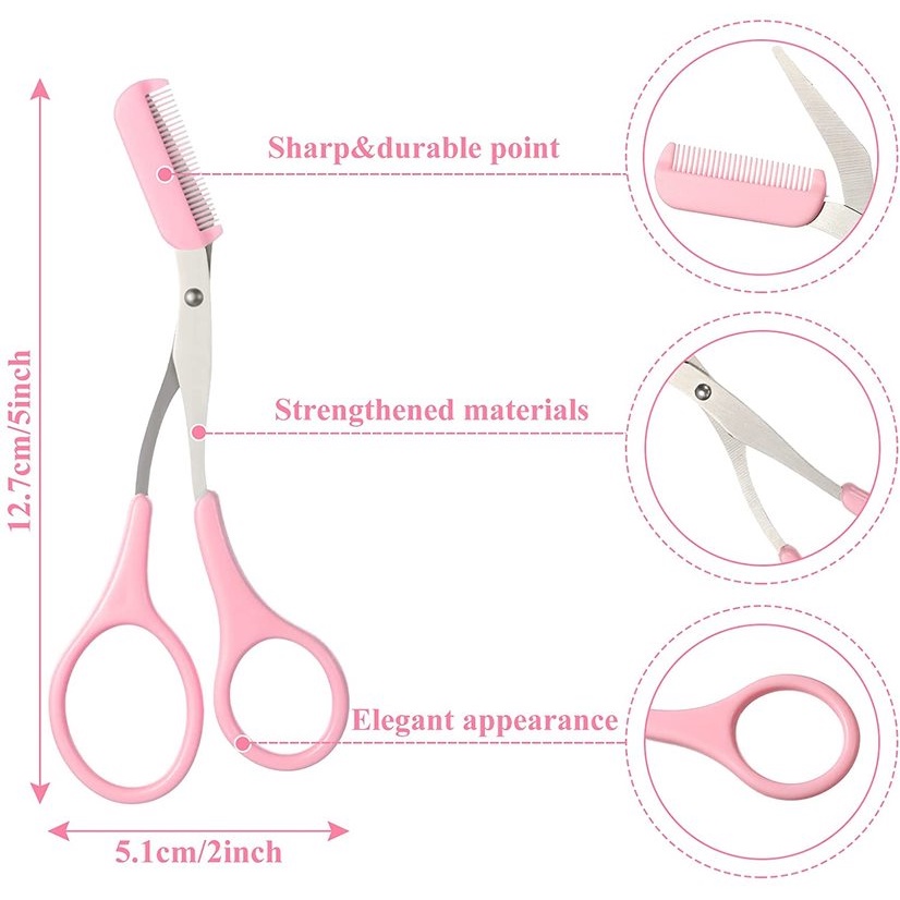 Detail 1pc Gunting Pemangkas Alis Multifungsi Bahan Stainless Steel Dengan Sisir Dapat Dilepas