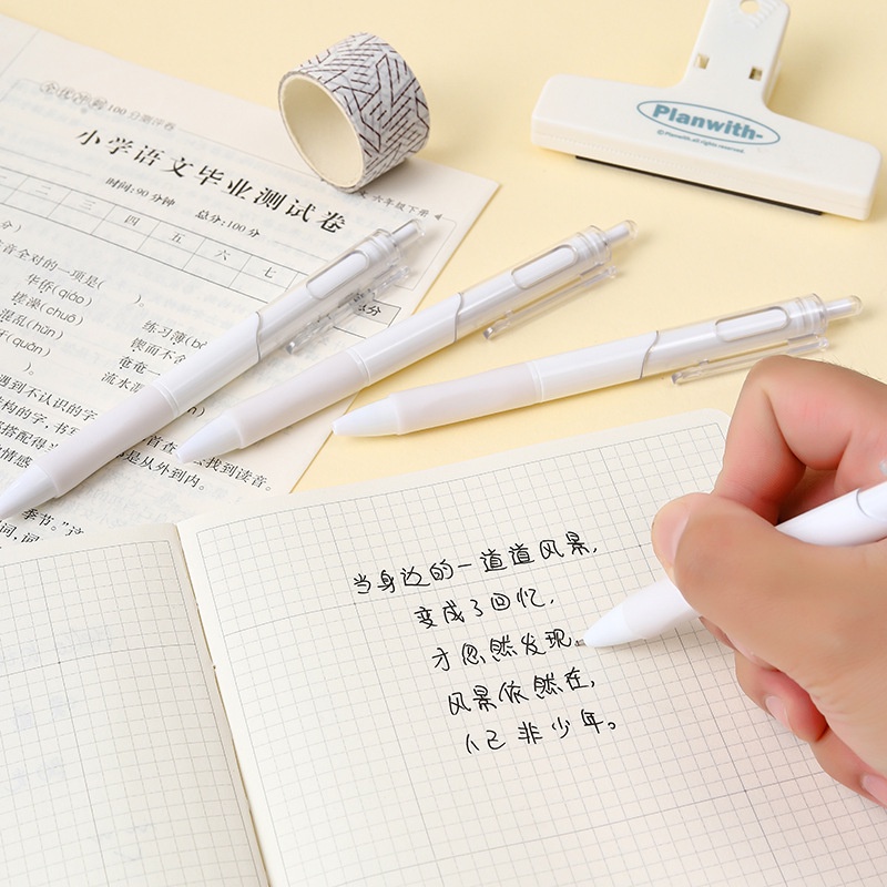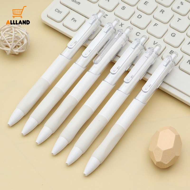 Detail 1pc Pulpen Gel 0.5mm Model Suntikan Tekan Tinta Hitam / Putih Untuk Stationery Sekolah