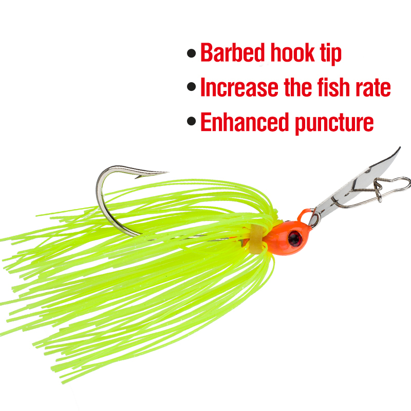 1, DESAIN UNIK: Umpan buzz terdiri dari kawat baja, bilah segitiga sayap angin berputar, jig timah kepala ikan, dan rok plastik. Buzzbait adalah alat yang bagus untuk menemukan bass di dangkal, juga penting untuk menemukan ikan.