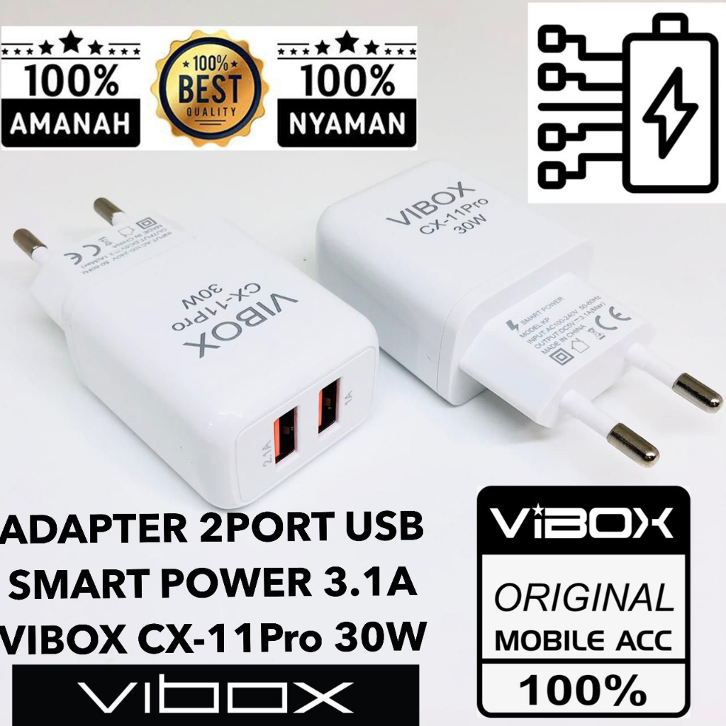 Handphone & Aksesoris > Kabel, Charger, & Konverter > Travel Adaptor > 1pcs BATOK CHARGER VIBOX METAL 1USB 3.1A 2 USB Batok charger 2usb vibox cx11Pro 30w 3.1A smart power cx11 Pro