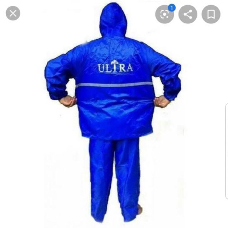 jas hujan setelan celana ULTRA SY306 original 100% Bahan tendon tebal. Bagian dalam ada lapisan anti bocor. Jahitan dilapis coating lagi supaya tidak tembus. Ukuran All Size. Lingkar dada 130cm Panjang baju 75cm Panjang tangan dari ketiak 50cm Panjang celana 100cm Lingkar pinggang maksimum 100cm (ditarik) pilihan warna : Hijau, Biru, Merah, Navy Jaminan harga TERMURAH