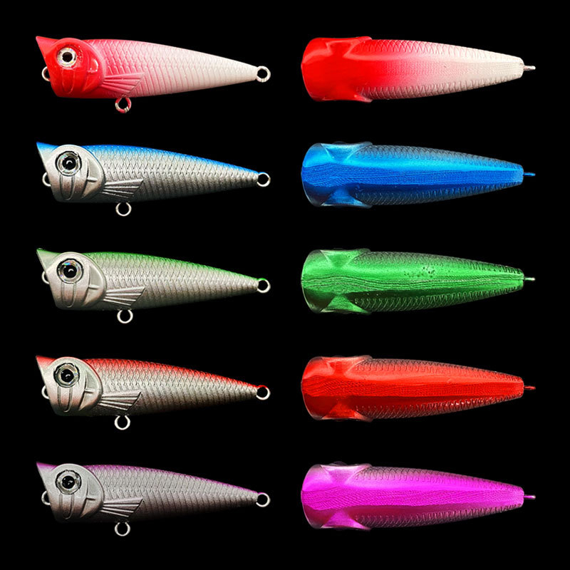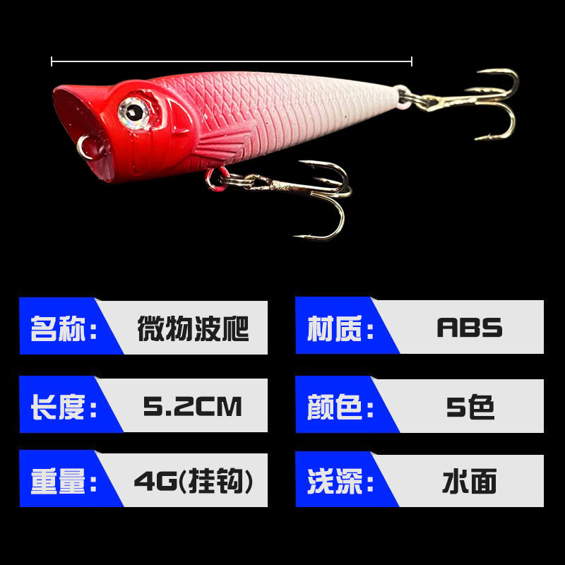 Detail 1pcs Popper Ikan Kecil Umpan Pancing Umpan Keras Warna-Warni 5cm/4g Crankbait Wobbler Tackle TopWater Mengambang Pike Umpan Dengan Kait Treble